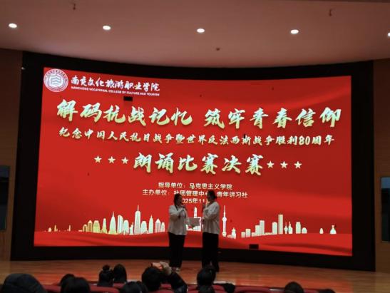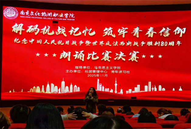 为纪念中国人民抗日战争暨世界反法西斯战争胜利80周年,传承红色基因,厚植青年学生的爱国情怀与使命担当,近日,由马克思主义学院悉心指导、青年讲习社精心策划的“解码抗战记忆,筑牢青春信仰”主题朗诵活动在学术报告厅圆满落幕。马克思主义学院教师代表、青年讲习社全体成员及学生代表齐聚现场,共同聆听跨越时空的精神对话,感受抗战精神的永恒力量。
